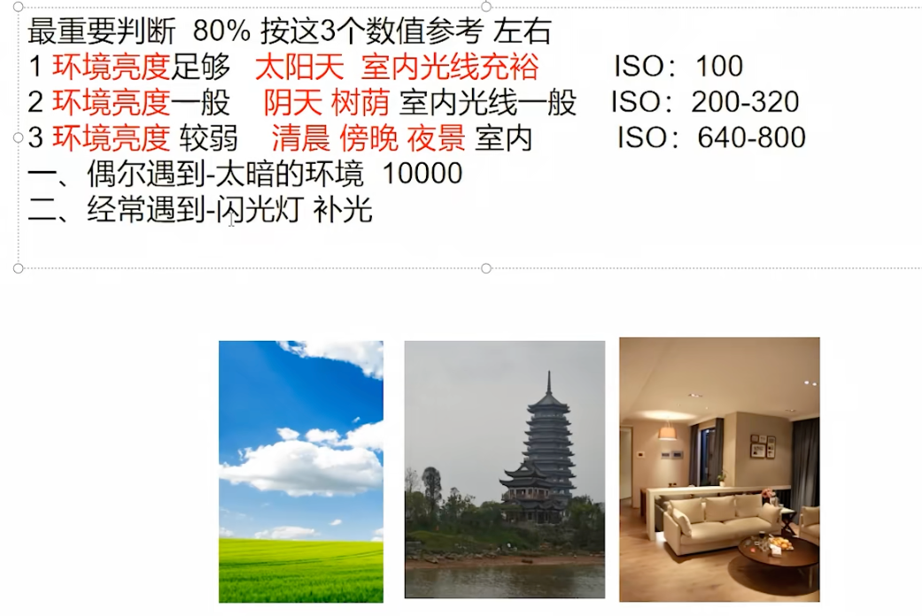 3、感光度-最低(相当于在你的相机里面打开了一盏灯,这栈灯有一百瓦、两百瓦等等,调好上面两个这个一般调到最低即可)